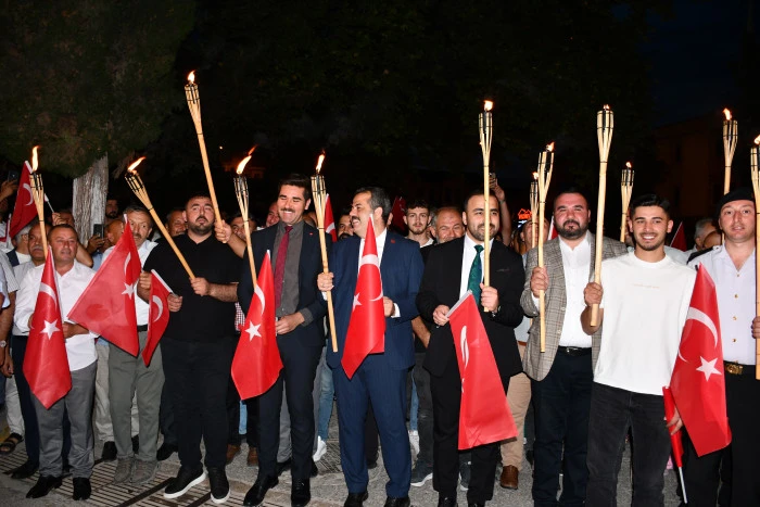 Program, protokol üyeleri ve vatandaşların Köprülü Mehmet Camii’nde topluca kıldığı akşam namazıyla başladı. Namazın ardından Köprülü Mehmet Paşa Camii’nden başlayarak Cumhuriyet Meydanı’nda sona eren Millî Birlik ve Demokrasi Yürüyüşü gerçekleştirildi.