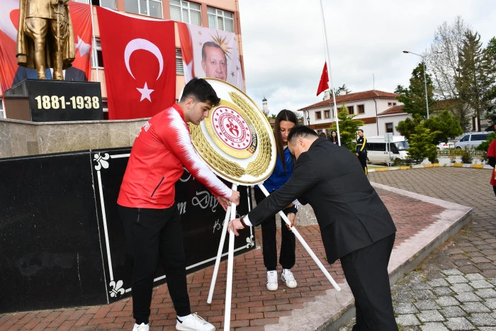 Program, Vezirköprü Gençlik ve Spor İlçe Müdürlüğü’nün Atatürk Anıtı’na çelenk sunmasıyla başladı. Çelenk sunma töreninde Gençlik ve Spor İlçe Müdürü Mehmet Uyar, Gençlik ve Spor İlçe Müdürlüğü adına çelengi Cumhuriyet Meydanı’nda bulunan Atatürk Anıtı’na sundu.