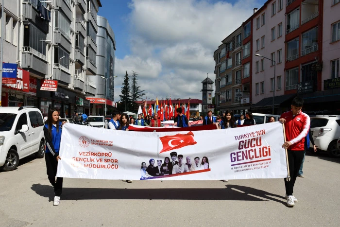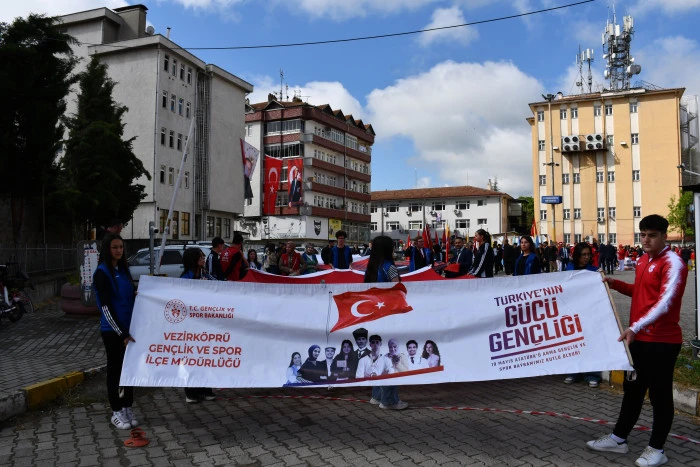 Ardından düzenlenen Gençlik Yürüyüşü ile vatandaşlar bayram coşkusuna ortak oldu. Cumhuriyet Meydanı’ndan başlayan yürüyüşte Protokol Üyeleri, Okul Müdürleri, öğretmenler ve öğrenciler, Vezirköprü Bando Takımı eşliğinde Vezirköprü İlçe Stadyumu’na yürüdü.