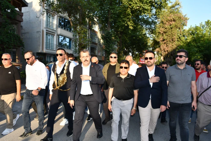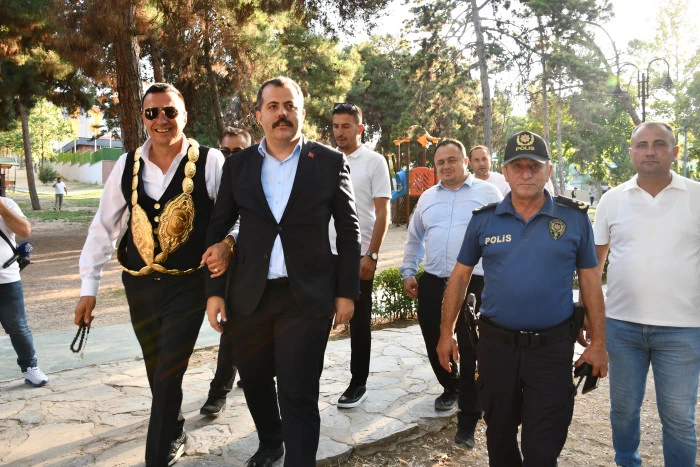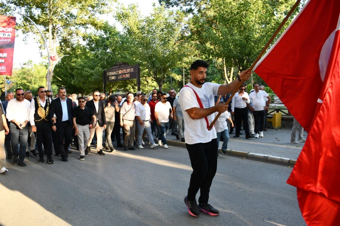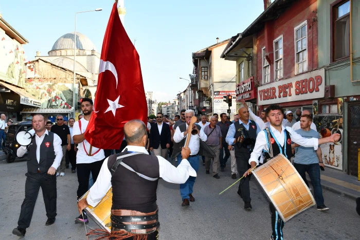 Geçen yılın Kunduz Yağlı Güreşleri Başpehlivanı Mustafa Taş’ın bayrak ile en önde yürüdüğü kortej Vezirköprü Çamlık Parkı’ndan başlayıp, Köprülü Mehmet Paşa Parkı’nda son buldu.