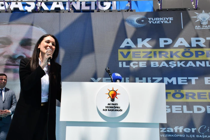 Ardından söz alan AK Parti Samsun Milletvekili MKYK Üyesi Çiğdem Karaaslan: “Bugün Ak Partimize yakışan, Vezirköprü’müze yakışan yeni ilçe binamızı açıyoruz. Burası sadece bir bina değil, burası duvarlardan oluşan bir yapıdan ibaret değil. Burası bizim heyecanımızla hizmet etmek için yeni hizmet noktamız.” İfadelerini kullandı.
