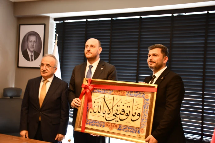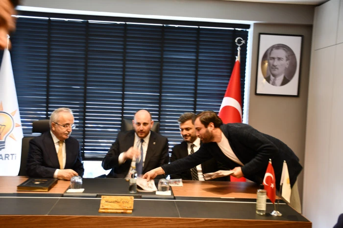 Tören sonrası AK Parti Teşkilat Binasını gezen Genel Başkan Yardımcısı, Teşkilat Başkanı Ahmet Büyükgümüş’e Özlem Gazetesi muhabiri Mert Ali Yılmaz tarafından gazetenin bu haftaki sayısı takdim edildi.