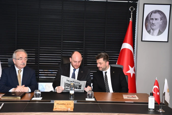 Genel Başkan Yardımcısı Büyükgümüş, Yılmaz’a teşekkür ederek gazetemizi inceledi.