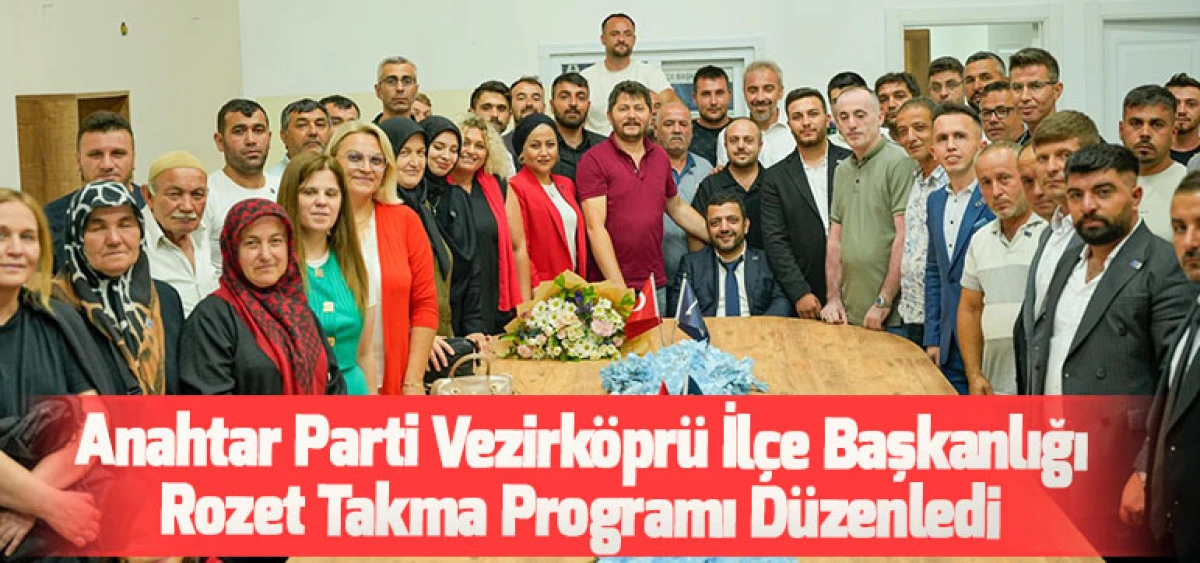 Anahtar Parti Vezirköprü İlçe Başkanlığı, yaklaşık 40 mahallede teşkilatlanma çalışmalarını tamamlayarak önemli bir organizasyona imza attı. Samsun İl Başkanı Dr. Ahmet Kargucak, İlçe Başkanı Cem Çevik ve parti yönetiminin katılımıyla rozet takma programı düzenlendi.