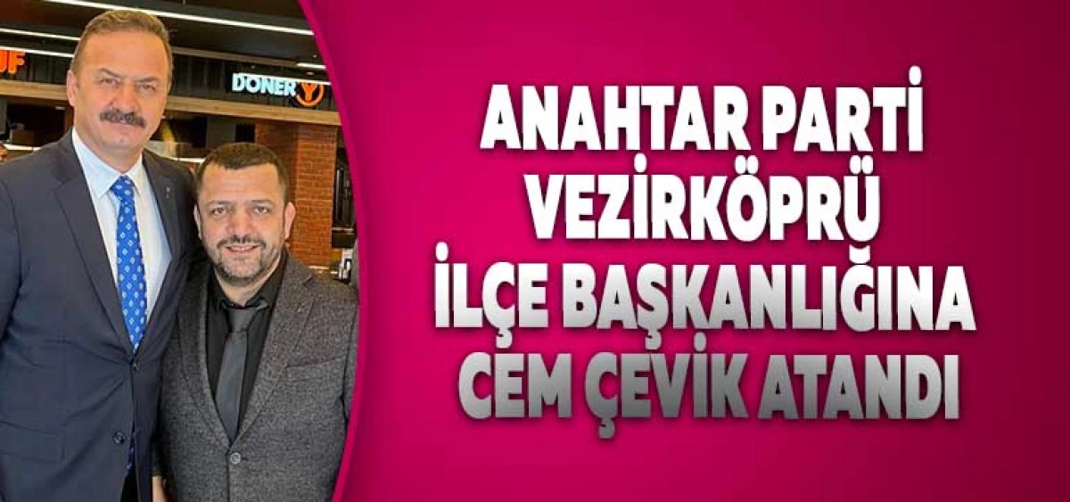 Anahtar Parti Vezirköprü İlçe Başkanlığı’na Cem Çevik getirildi. Bir süre önce genel kurulunu gerçekleştiren partide, ilçe başkanlığı görevini kurucu başkan Hasan Başar yürütüyordu. Ancak Başar’ın yurt dışı iş seyahatleri nedeniyle görevinden ayrıldığı öğrenildi.