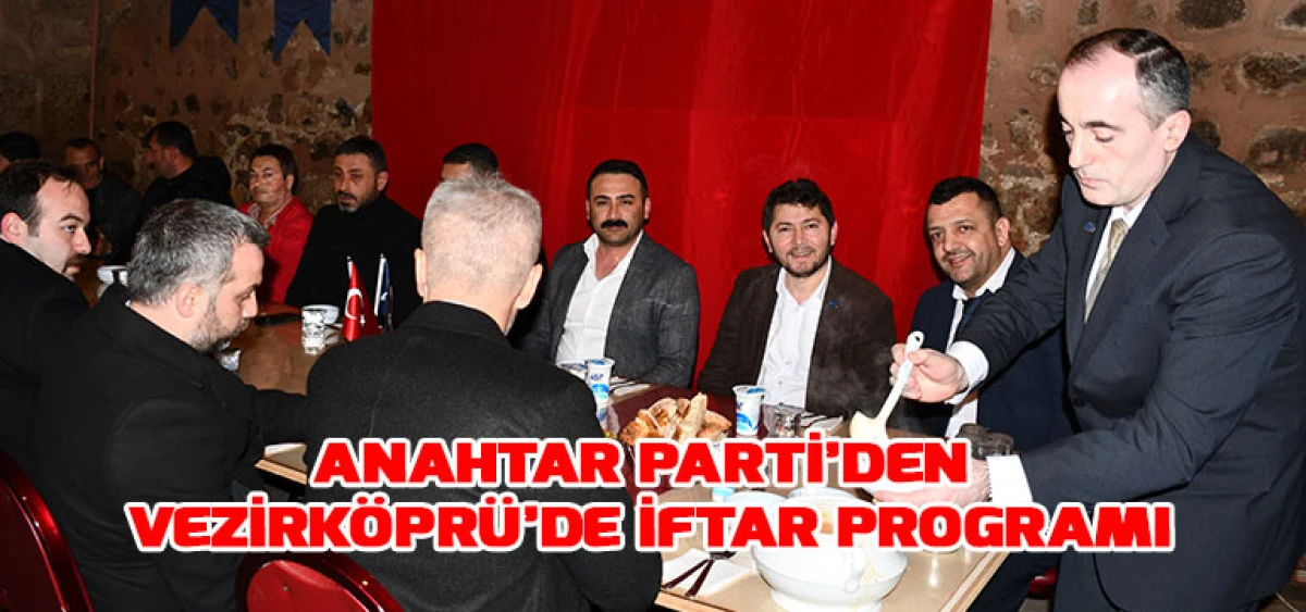 Vezirköprü Anahtar Parti İlçe Başkanlığı tarafından Tarihi Bedesten’de bulunan Üçler Restoran’da gerçekleştirilen iftar programına Anahtar Parti Samsun İl Başkanı Op. Dr. Ahmet Kargucak, İl Kadın Kolları Başkanı Neslihan Koyuncu, İl Gençlik Kolları Başkanı Eray Olgun, Vezirköprü İlçe Başkanı Cem Çevik, Yeniden Refah Partisi Vezirköprü İlçe Başkanı Fatih Koç ile Anahtar Parti Vezirköprü teşkilatı ve Samsun’daki diğer ilçe başkanları ile yönetim kurulu üyeleri katıldı.