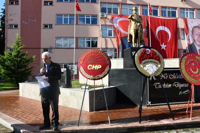 Vezirköprü Cumhuriyet Meydanı’nda düzenlenen törene CHP Vezirköprü İlçe Başkanı Nazım Kale ve partililer katılım sağladı. Törende İlçe Başkanı Kale, partililer adına Cumhuriyet Halk Partisi çelengini Atatürk Anıtı’na sundu.