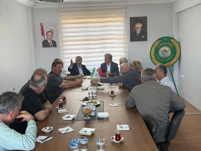 Milletvekili Dr. Çan’a ziyaretleri sırasında CHP Vezirköprü İlçe Başkanı Nazım Kale ve parti heyeti eşlik etti. Program kapsamında ilk olarak Vezirköprü Ziraat Odası Başkanı Aslan Kaya’yı makamında ziyaret eden heyet, ilçedeki tarımsal üretim faaliyetleri hakkında bilgi aldı. Görüşmede özellikle kenevir, buğday ve ayçiçeği gibi temel ürünlerde üreticilerin yaşadığı sorunlar ele alındı. Dr. Çan, partisinin bu sorunlara yönelik çözüm önerilerini de paylaşarak çiftçilerin desteklenmesi gerektiğini vurguladı.