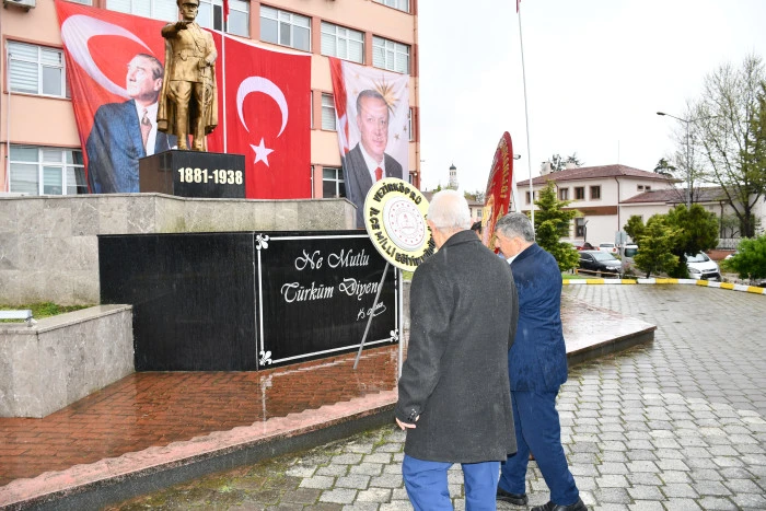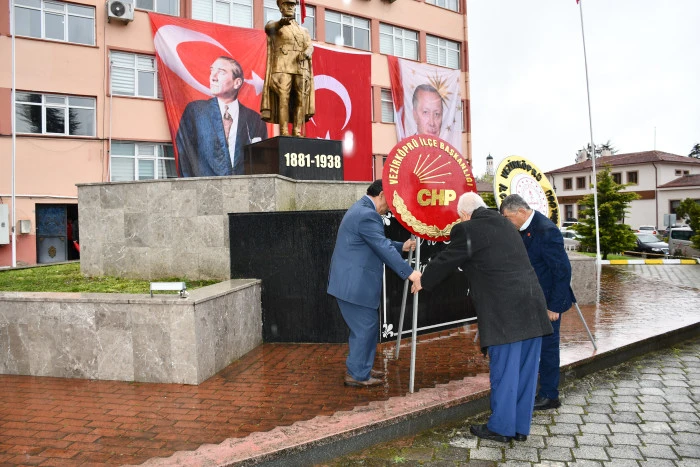 Cumhuriyet Meydanı’nda bulunan Atatürk Anıtı önünde düzenlenen törende, CHP Vezirköprü İlçe Başkanlığı adına İlçe Başkanı Nazım Kale çelenk sundu.