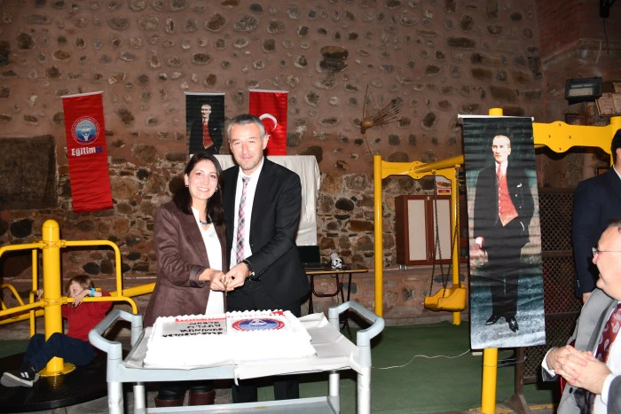 Program, günün anısına hazırlanan pastanın İlçe Başkanı Türksoy ile yönetimi tarafından kesilmesi ve öğretmenlere çeşitli hediyelerin takdim edilmesiyle sona erdi.