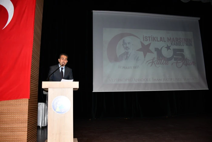 Vezirköprü’de, İstiklal Marşı’nın Kabulünün 105. yılı ve Mehmet Akif Ersoy’u anmak amacıyla anlamlı bir program gerçekleştirildi. Etkinlik, Belediye Kültür Merkezinde Vezirköprü Anadolu İmam Hatip Lisesi tarafından hazırlandı.
