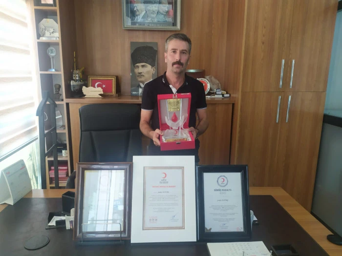 Öztürk, 24 ünite trombosit ve 4 ünite kırmızı kan hücresi olmak üzere sadece bir yıl içerisinde 28 ünite tam kan bağışlayarak bir rekora imza attı.