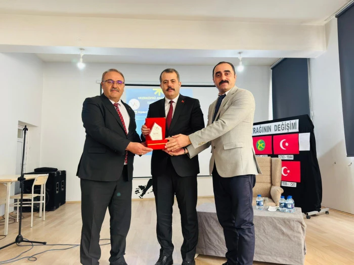 Programın sonunda İlçe Millî Eğitim Müdürü Resül Özata ve Okul Müdürü Mehmet Çam tarafından Kaymakam Özgür Kaya’ya katkı ve desteklerinden dolayı plaket takdim edildi.