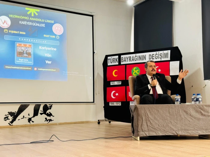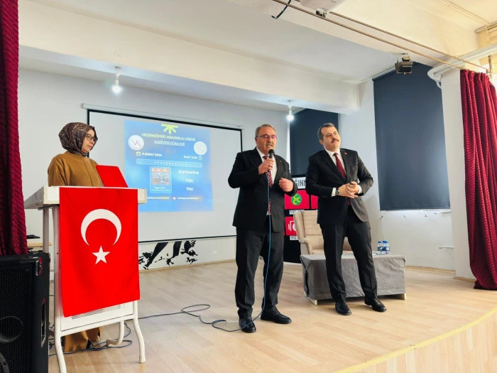 Vezirköprü Anadolu Lisesi, “Kariyerine Yön Ver” mottosuyla düzenlenen Kariyer Günleri programı kapsamında anlamlı bir buluşmaya ev sahipliği yaptı. İlçe Kaymakamı Özgür Kaya, İlçe Millî Eğitim Müdürü Resül Özata ve Şube Müdürü Burak Akça okulu ziyaret ederek öğrencilerle bir araya geldi.