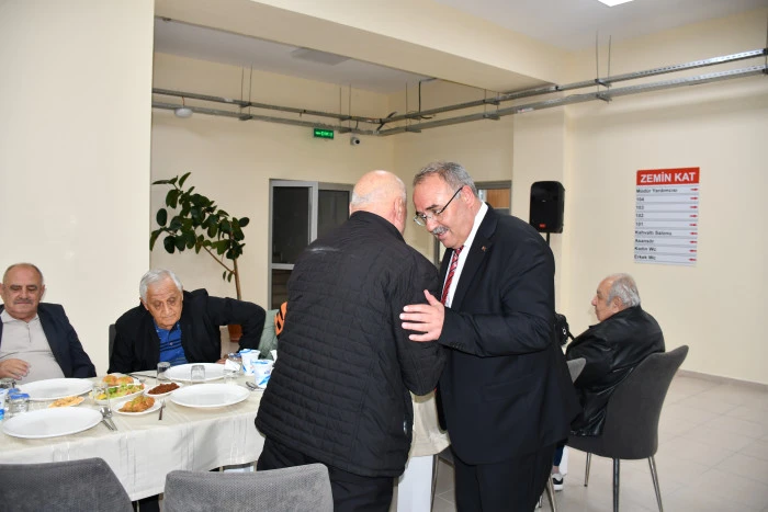 Yemek sonrası emekli öğretmenler, protokol üyeleri keyifli sohbet ettiler.