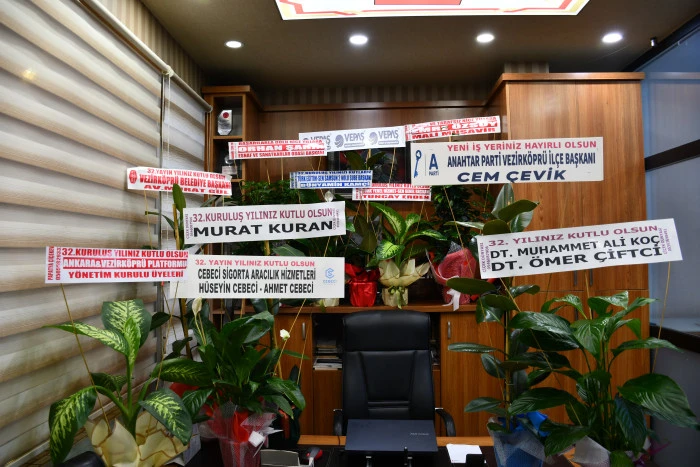 Vezirköprü Belediye Başkanı Murat Gül, Türk Yerel Hizmet Sen Genel Başkanı Tuncay Erden, Türk Eğitim-Sen 2 Nolu Şube Başkanı Bünyamin Kamçı, Vepaş Emlak ve Gayrimenkul Şükrü Yiğit, Cebeci Sigorta Hüseyin Cebeci ve Ahmet Cebeci, Anahtar Parti Gençlik Kolları Başkanı Murat Kuran, Genç Diş Hekimleri Ömer Çiftci ve Muhammmet Ali Koç, Anahtar Parti İlçe Başkanı Cem Çevik, gönderdikleri çiçeklerle gazetemizin 32. Yayın yılını kutlayarak ofisimizi çiçek bahçesine çevirdiler.