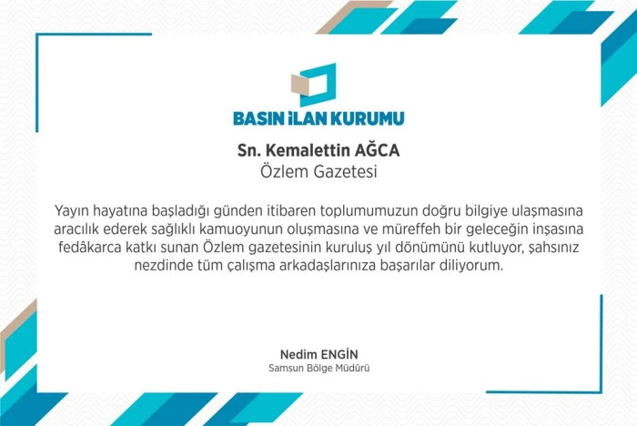 Basın İlan Kurumu Samsun Bölge Müdürü Nedim Engin ise gönderdiği kutlama mesajı ile“İlkeli, tarafsız, sorumlu habercilik anlayışıyla 32 yıldır basınımıza sağladığınız katkılarınız için teşekkür eder bölgemize değer katan çalışmalarınızın uzun yıllar devam etmesini dilerim” dedi.