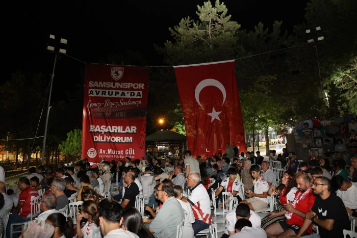 27 yıl aradan sonra Avrupa kupalarında sahne alan Samsunspor’un, 21 Ağustos Perşembe günü Yunanistan’ın başkenti Atina’da Panathinaikos ile oynadığı karşılaşma, Vezirköprü 15 Temmuz Şehitler Parkı’nda (Çamlık) düzenlenen etkinlikle taraftarlara dev ekranda izletildi. Vezirköprü Belediyesi tarafından organize edilen etkinliğe İlçe Kaymakamı Özgür Kaya, Belediye Başkanı Av. Murat Gül, AK Parti İlçe Başkanı Muzaffer Çil ve çok sayıda vatandaş katıldı. Taraftarlar, maçın ilk dakikalarından itibaren büyük bir heyecanla takımlarını destekledi. Samsunlu futbolseverler, Avrupa arenasında mücadele eden takımlarına destek vermek için bir araya gelerek unutulmaz bir futbol akşamı yaşadı.