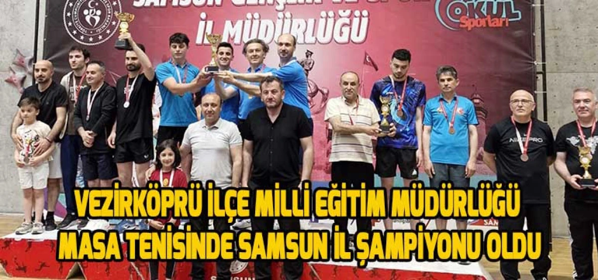 Samsun’da 24-25 Mayıs tarihlerinde Türkiye Masa Tenisi Federasyonu tarafından düzenlenen Kuruluşlar Arası Masa Tenisi Türkiye Şampiyonası İl Birinciliği Müsabakalarında Vezirköprü İlçe Milli Eğitim Müdürlüğü büyük bir başarıya imza attı.