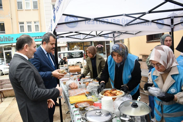 İlçe Müftüsü Naci Yalçınkaya’nın yaptığı dua ile açılan hayır çarşısına Kaymakam Kaya da alışveriş yaparak destek verdi.