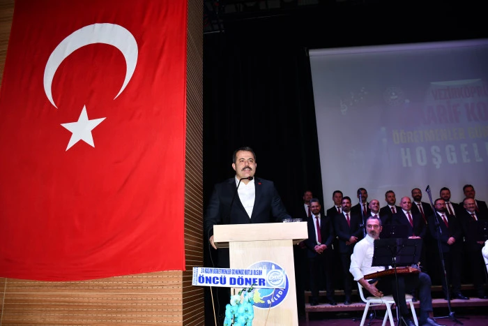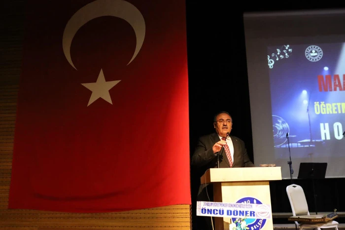 Açılış konuşmasını yapan İlçe Milli Eğitim Müdürü Resül Özata, koro üyelerine emeklerinden dolayı teşekkür ederek tüm öğretmenlerin gününü kutladı.