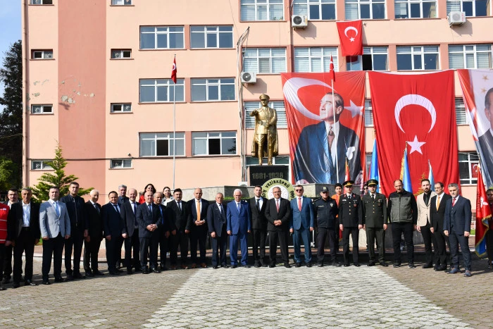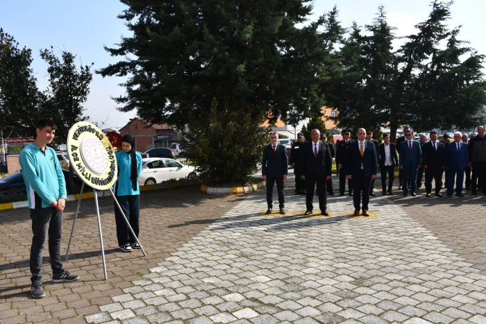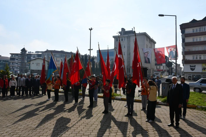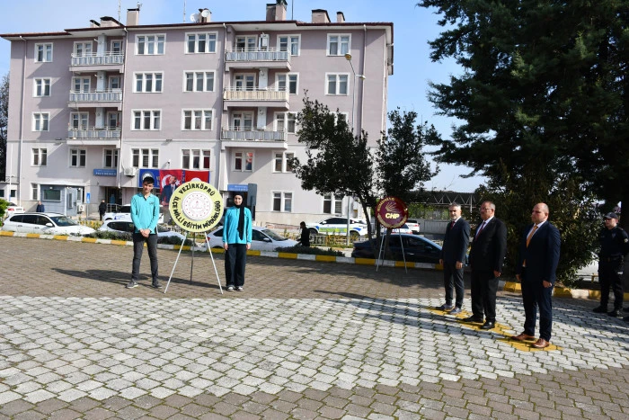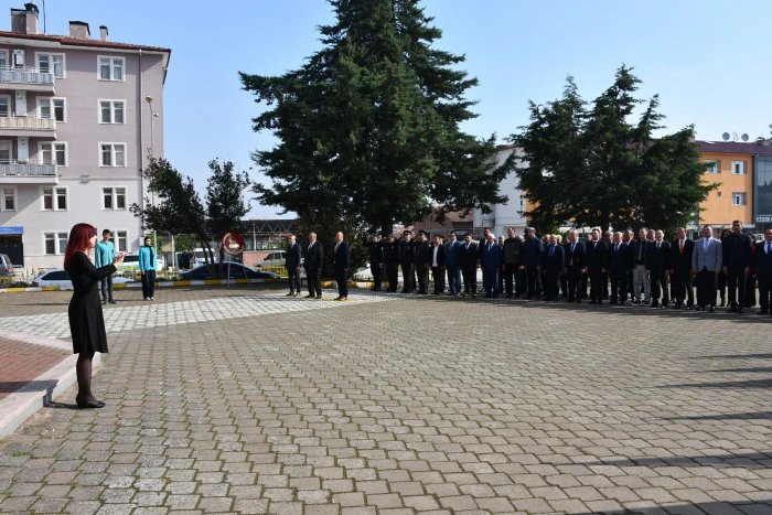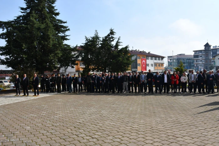 Cumhuriyet Meydanı’nda bulunan Atatürk Anıtı’nın önünde düzenlenen törene İlçe Milli Eğitim Müdürü Resül Özata, İlçe Jandarma Komutan Vekili Üsteğmen Mustafa Çavuş, İlçe Emniyet Müdürü Ahmet Çelik, Kaymakamlık Yazı İşleri Müdürü Nurettin Edis, Gençlik ve Spor İlçe Müdürü Mehmet Uyar, İlçe Müftüsü Naci Yalçınkaya, kurum ve kuruluşların temsilcileri, öğretmenler ve öğrenciler katıldı.