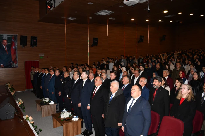 Başöğretmen Mustafa Kemal Atatürk ve tüm öğretmenler anısına saygı duruşu ve İstiklal Marşı’nın okunmasıyla başlayan programda açılış konuşmasını İlçe Milli Eğitim Müdürü Resül Özata gerçekleştirdi. Özata yaptığı konuşmada: “Bugün yüzyıllardır ilime ve irfana öncülük eden bir medeniyetin mensupları olarak toplumun mimarları sayılan öğretmenlerimizin gününü hep birlikte idrak etmenin heyecanını yaşıyoruz. 24 Kasım Öğretmenler günü sadece bir günden ibaret olmayıp milletimizin, öğretmenlerimize duyduğu saygı, minnet ve vefanın güçlü bir ifadesidir.” İfadelerini kullandı.