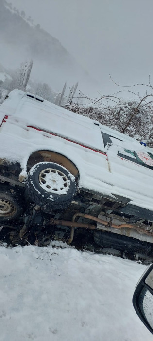 Vezirköprü’de ihbar üzerine Sarıdibek Mahallesi’ne giden ambulans, kötü hava şartlarından dolayı kontrolden çıkarak devrildi. Yol yardım ekipleri ambulansı kaldırırken ambulansta bulunan sağlık çalışanlarının durumunun iyi olduğu öğrenildi.