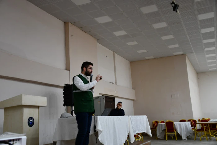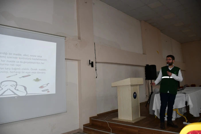 Seminerde Vezirköprü İlçe Sağlık Müdürlüğü personeli Deniz Bülbüller, bağımlılığın tedavi süreci hakkında katılımcılara bilgi vererek AMATEM ve ÇAMATEM merkezlerinin işleyişini anlattı.