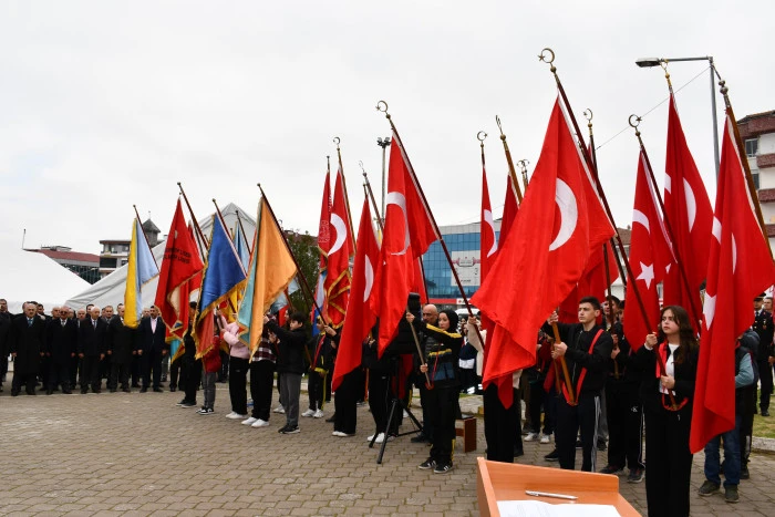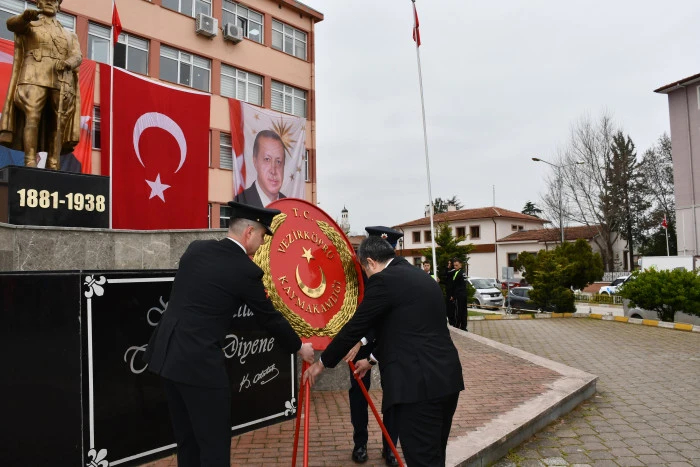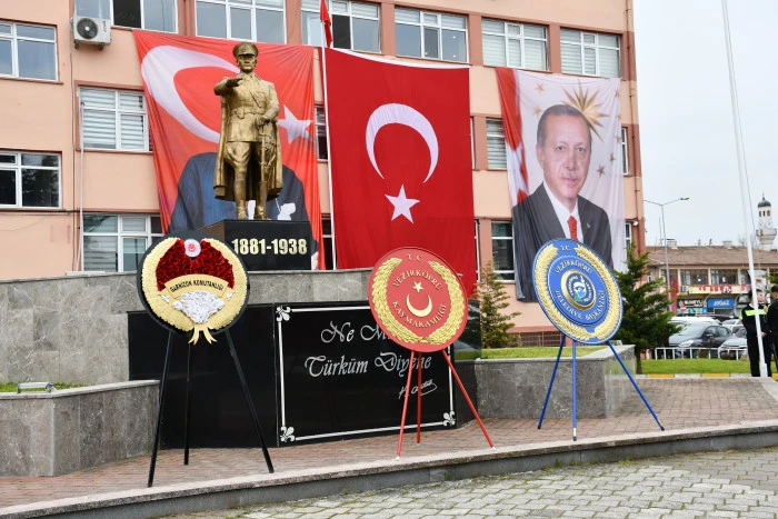 Tören, saygı duruşu ve İstiklal Marşı’nın okunmasıyla başladı. Ardından Kaymakamlık adına Kaymakam Özgür Kaya, Garnizon Komutanlığı adına Garnizon Komutanı Yunus Emre İncesu ve Belediye Başkanlığı adına Başkan Murat Gül tarafından Atatürk Anıtı’na çelenk sunumu gerçekleştirildi.