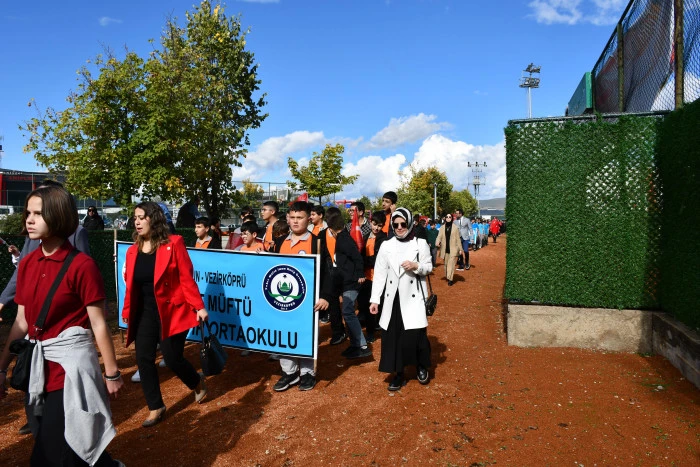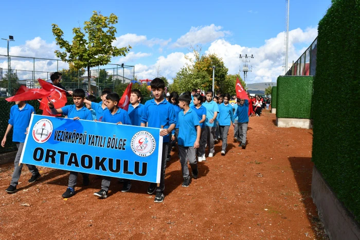 Kutlamalar, Vezirköprü Mesleki ve Teknik Anadolu Lisesi Bando Takımı öncülüğünde gerçekleştirilen tören geçişiyle devam etti.