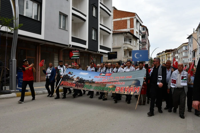 Katılımcılar, yürüyüş boyunca sloganlarla İsrail’i protesto etti. Cumhuriyet Meydanı’nda kurulan Hayır Çarşısı’nda son bulan yürüyüşün ardından, günün anlam ve önemine ilişkin konuşmalar yapıldı.