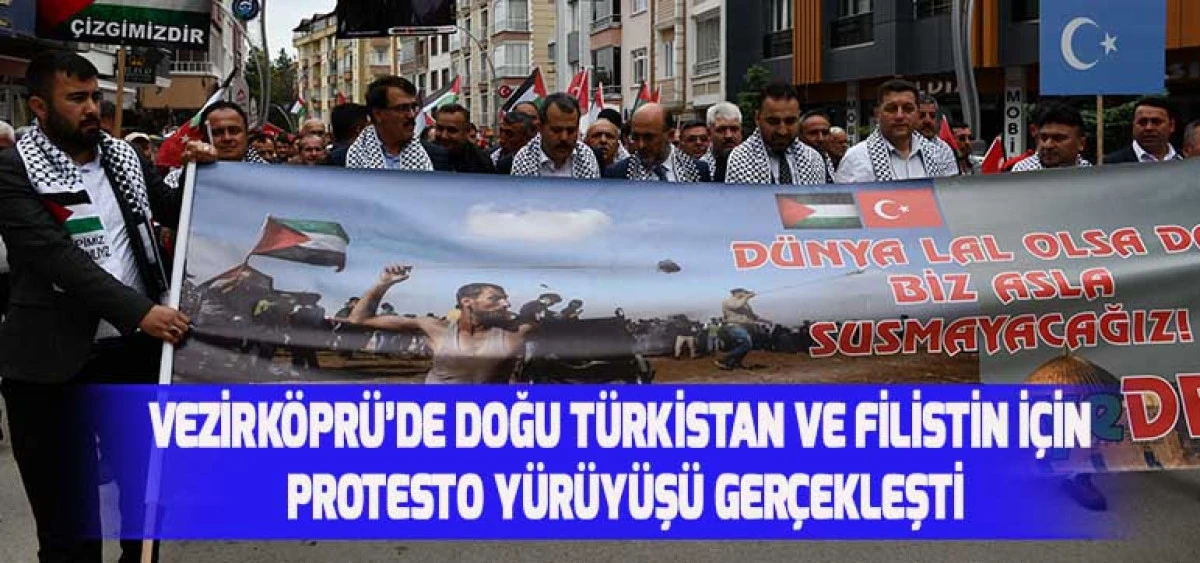 Vezirköprü’de Doğu Türkistan ve Filistin için Protesto Yürüyüşü Gerçekleşti
