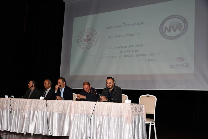 Vezirköprü’de, yerel yöneticilerin bilgi düzeyini artırmak ve görevlerini daha etkin şekilde yerine getirmelerine katkı sağlamak amacıyla muhtarlara yönelik bilgilendirme semineri gerçekleştirildi. Etkinlik, Kaymakamlık himayesinde Vezirköprü İlçe Nüfus Müdürlüğü tarafından organize edildi.