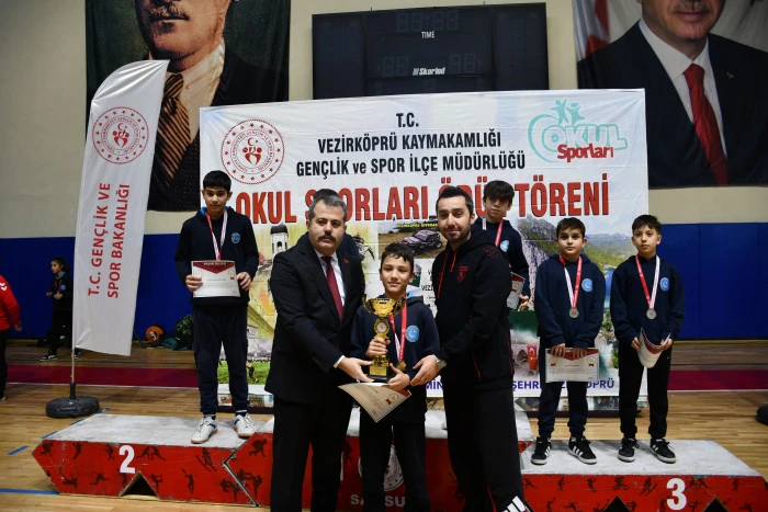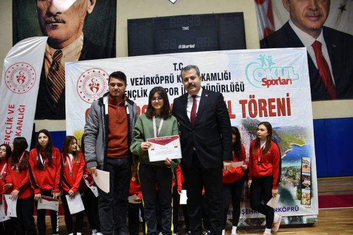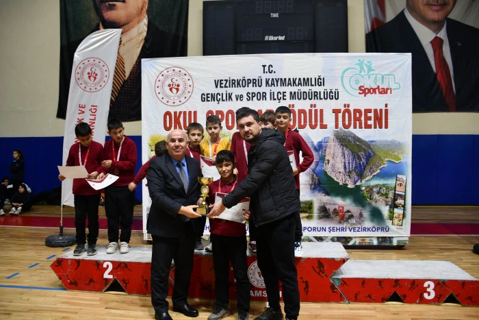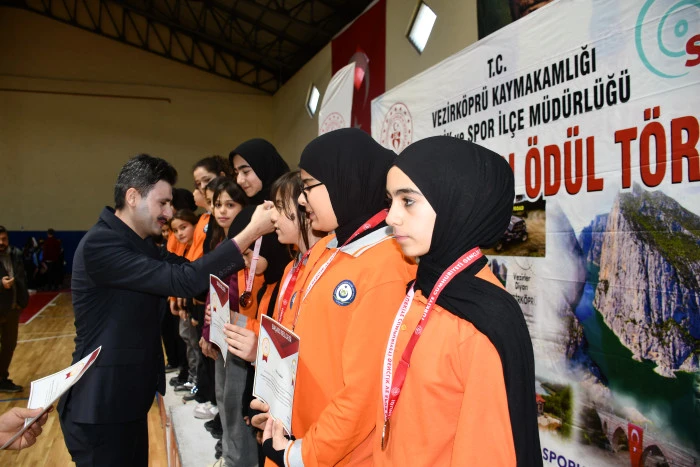 Vezirköprü’de, 2025-2026 eğitim-öğretim yılı kapsamında düzenlenen okul sporları müsabakalarında dereceye giren öğrenciler için ödül töreni gerçekleştirildi.