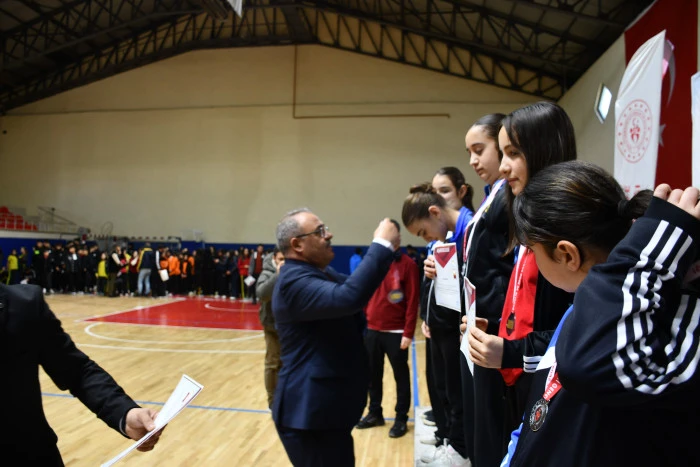 Konuşmaların ardından, ilçede farklı branşlarda düzenlenen okul sporları müsabakalarında derece elde eden sporculara madalya ve kupaları protokol üyeleri tarafından takdim edildi.