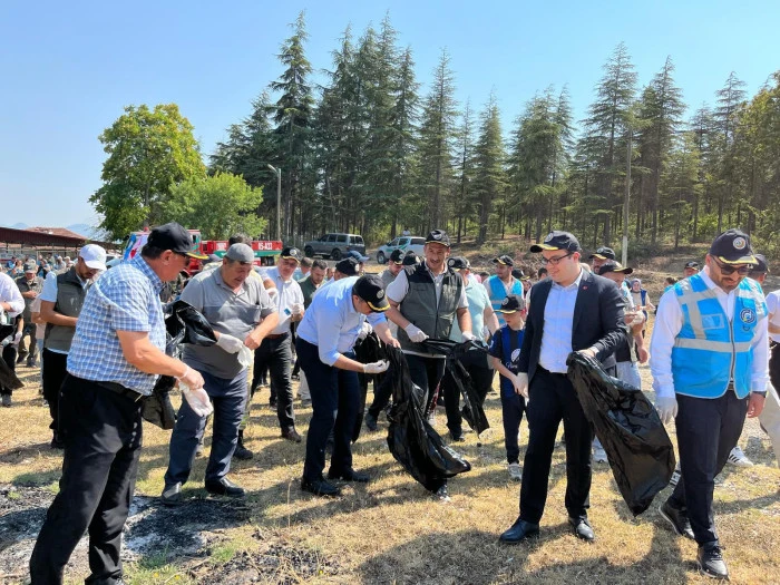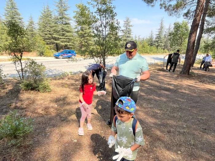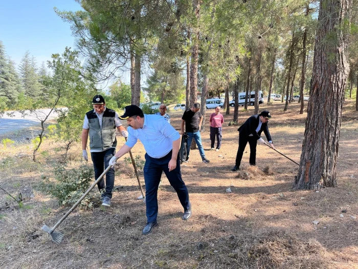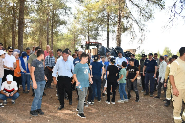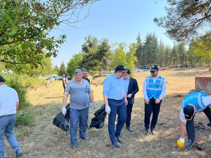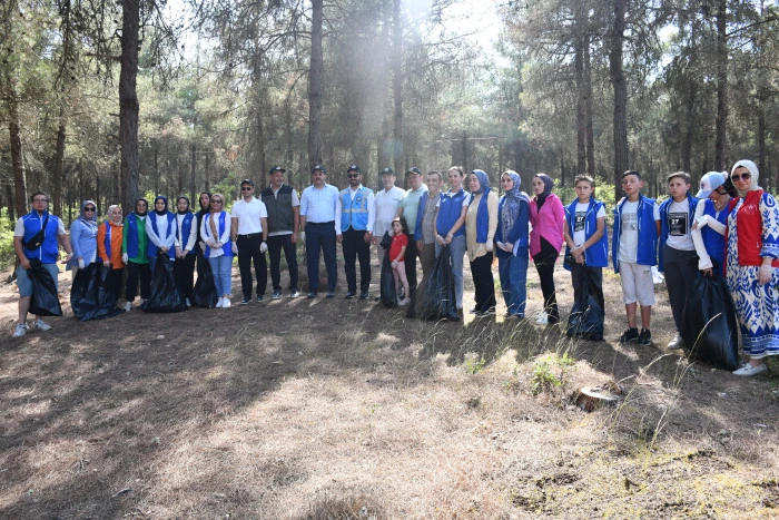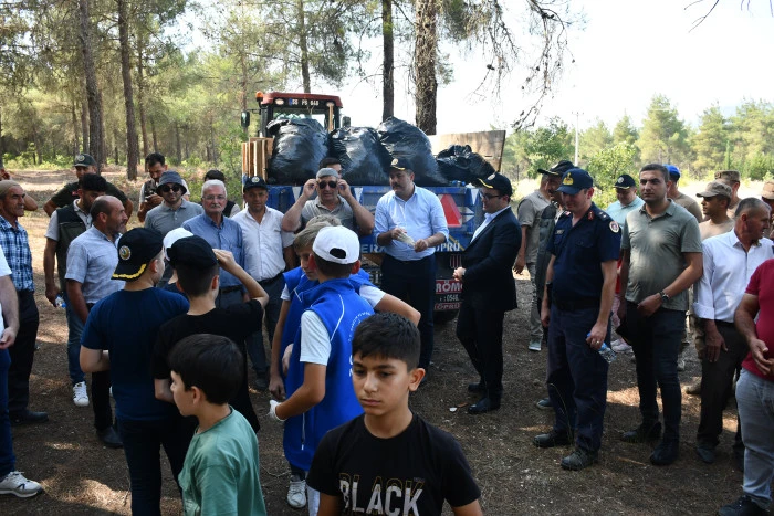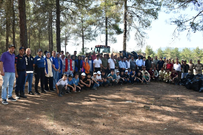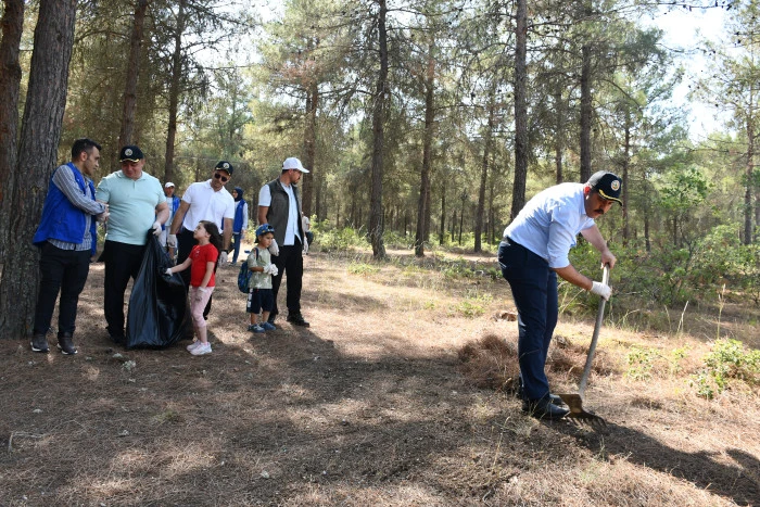 Protokol üyeleri ve vatandaşlar birlikte ormanlık alandaki çöpleri toplayarak çevre temizliği yaptı. Etkinlik, hem doğaya sahip çıkılması hem de orman yangınlarının önlenmesi adına farkındalık oluşturdu.