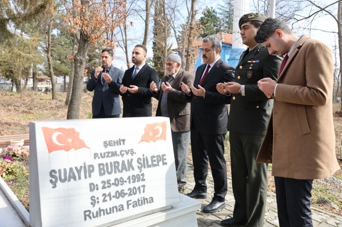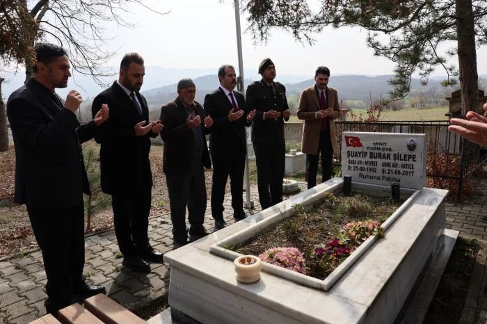 Şehitliklerde Kur’an-ı Kerim tilaveti gerçekleştirilirken, şehitler için dualar edildi.