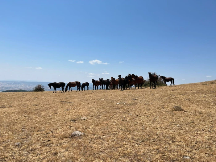 Uzun süredir kaçak avcılık ve kuraklık nedeniyle bölgede görülmeyen yılkı atları, ilçenin yüksek kesimlerinde sürü halinde görüntülendi. Görüntülerde, atların arasında tayların da yer aldığı dikkat çekti.