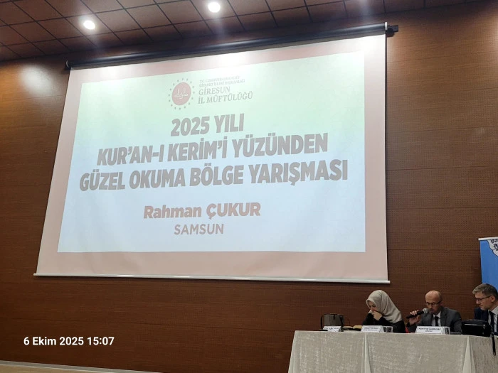 Diyanet İşleri Başkanlığı tarafından Giresun’da düzenlenen Kur’an Kursları Arası Kur’an-ı Kerim’i Güzel Okuma Bölge Yarışmasında, Samsun’u temsil eden Vezirköprü Müftülüğü Merkez Erkek Kur’an Kursu öğrencisi Rahman Çukur bölge üçüncüsü oldu.