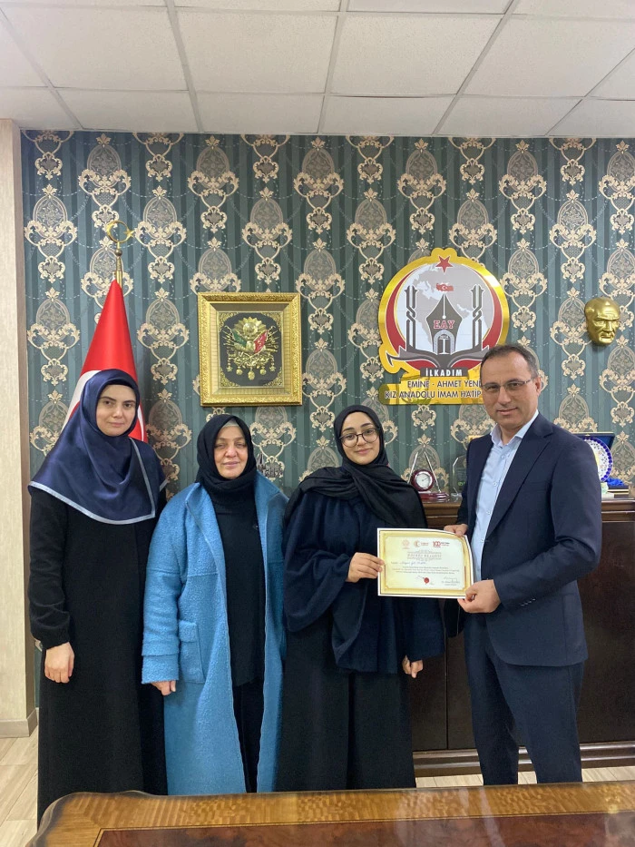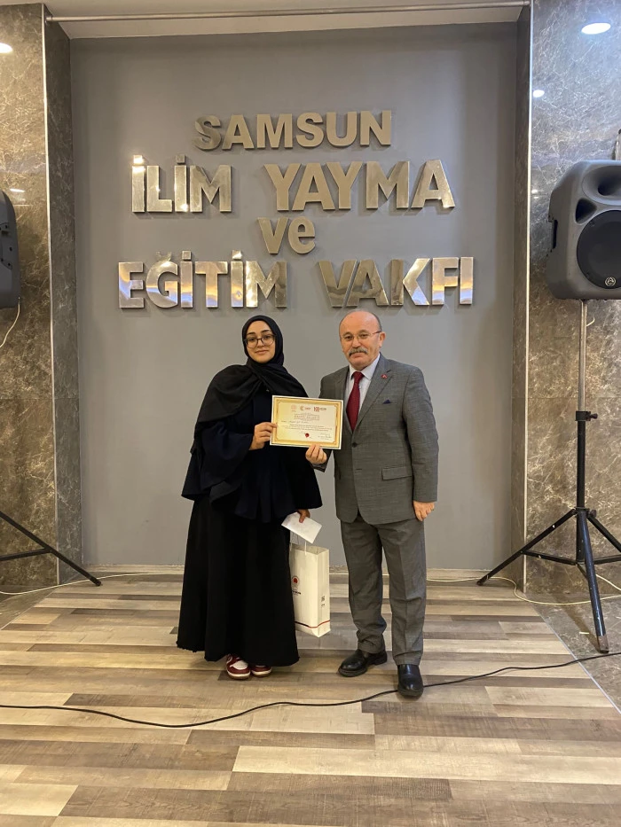 Başarılı öğrencinin, iki yıl önce Vezirköprü Kız İmam Hatip Ortaokulu’nda düzenlenen yarışmada ilçe ikincisi olduğu öğrenildi.