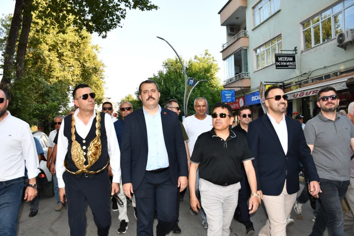 Geçen yılın Kunduz Yağlı Güreşleri Başpehlivanı Mustafa Taş’ın bayrak ile en önde yürüdüğü kortej Vezirköprü Çamlık Parkı’ndan başlayıp, Köprülü Mehmet Paşa Parkı’nda son buldu.