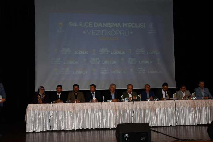 AK Parti Vezirköprü İlçe Başkanlığı tarafından düzenlenen 94. İlçe Danışma Meclisi Toplantısı, Samsun Milletvekilleri Ersan Aksu ve Orhan Kırcalı’nın katılımıyla gerçekleştirildi.