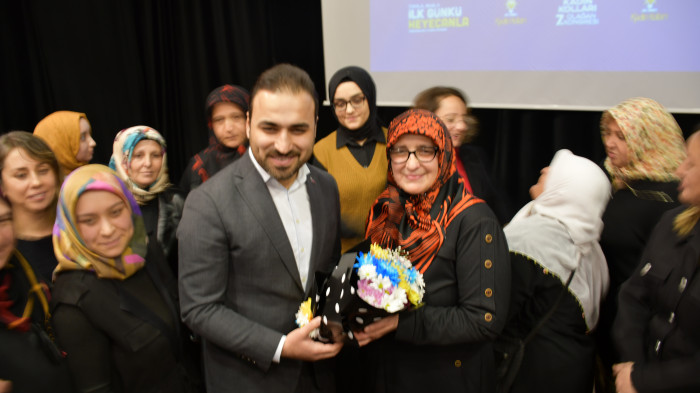 Biz kadınlar olarak başaramayacağımız şey yok diyen İlçe Kadın Kolları Başkanı Emine Yanga : “İlçe Başkanımızla, Belediye Başkanımızla elimizden geldiğince burada çalışıyoruz. Bizlerden yardımlarını esirgemedikleri için teşekkür ediyorum.” Dedi.