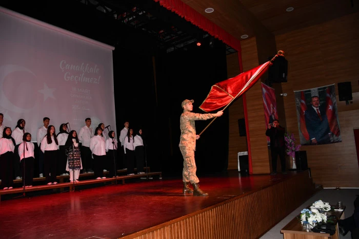 Program öncesinde, 18 Mart’a özel hazırlanan resim sergisi protokol üyeleri tarafından gezildi. Ardından saygı duruşunda bulunulması ve İstiklal Marşı’nın okunmasıyla başlayan etkinlikte, Vezirköprü Anadolu İmam Hatip Lisesi öğrencisi Furkan Çetiner Kur’an-ı Kerim tilaveti gerçekleştirdi.