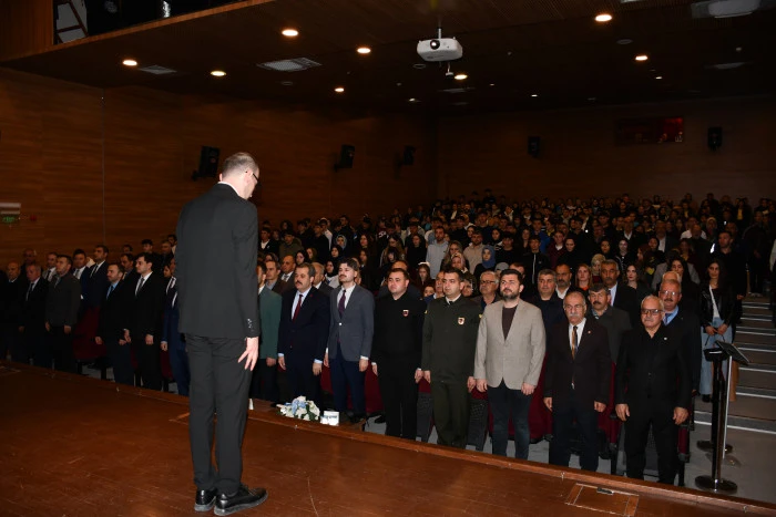 Vezirköprü Belediyesi Kültür Merkezi Konferans Salonu’nda düzenlenen programa İlçe Kaymakamı Özgür Kaya, Belediye Başkanı Murat Gül, Cumhuriyet Başsavcısı Sadullah Gümüş, İlçe Jandarma Komutan Vekili Teğmen Seyfettin Turğut, İlçe Müftüsü Naci Yalçınkaya Gençlik ve Spor İlçe Müdürü Mehmet Uyar, İlçe Milli Eğitim Müdürü Resül Özata, Ak Parti Vezirköprü İlçe Başkanı Muzaffer Çil, İyi Parti İlçe Başkanı Ramazan Yanar, Milli Eğitim Şube Müdürleri, kurum ve kuruluşların amirleri, okul müdürleri, öğretmenler ve öğrenciler katıldı.