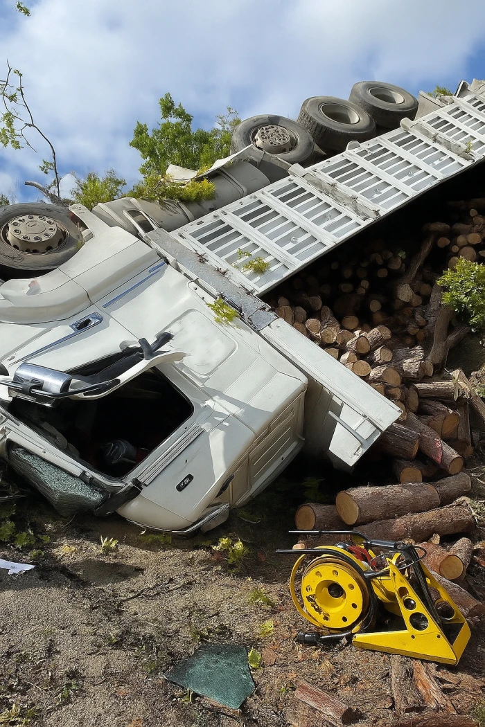 Feci Kaza! Odun Yüklü Kamyon Şarampole Yuvarlandı