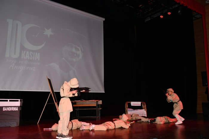 Tiyatro, oratoryo, müzik ve şiir dinletileri sunularak Mustafa Kemal Atatürk saygı ve minnetle anıldı.