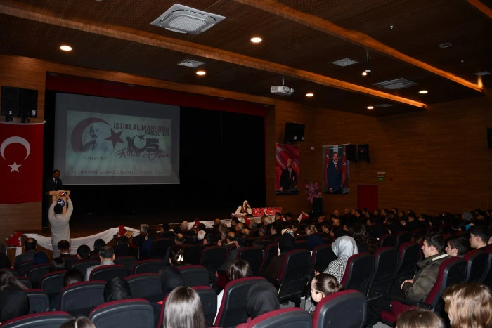 Etkinlik kapsamında İstiklal Marşı’nın kabulü konulu sinevizyon gösterisi sunuldu, öğrenciler tarafından şiir dinletileri, tiyatro gösterileri ve İstiklal Marşı oratoryosu sahnelendi.