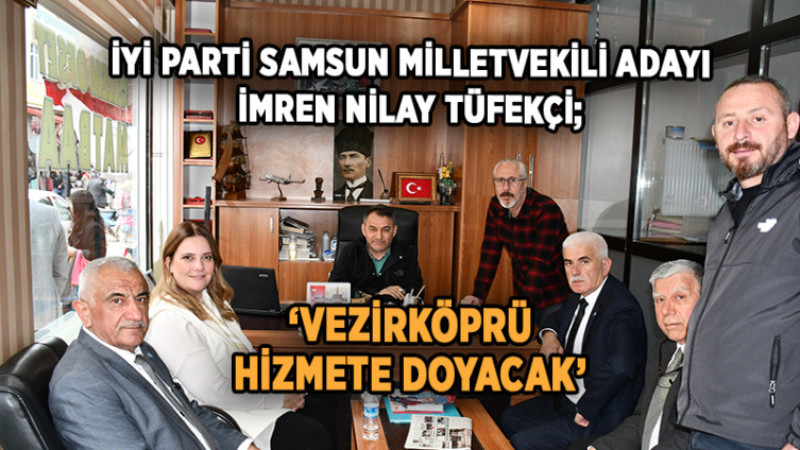 ‘İyilerin iktidarında Vezirköprü’de yarım kalan projeler bitirilecek.’ diyen İYİ Parti Samsun Milletvekili Adayı İmren Nilay Tüfekçi; “İşsizlik ve göçün önüne geçilmesi için istihdam alanları oluşturulacak. Vezirköprülü hemşehrilerimiz 14 Mayıs seçimlerinde ‘bir oy Kemal’e bir oy Meral’e’ vererek bugüne kadar alamadığı hizmetleri İyilerin iktidarında alacak.” dedi.